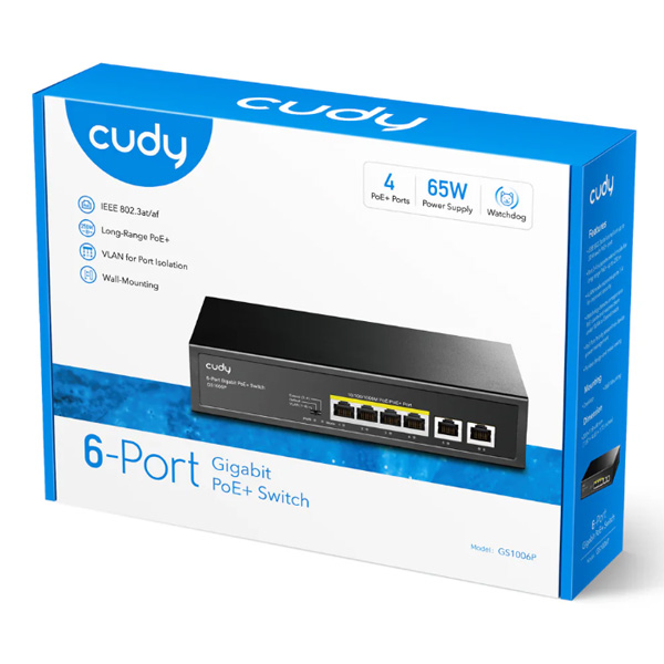 Thiết bị mạng Switch CUDY GS1006P 6 cổng Gigabit PoE + Switch 65W