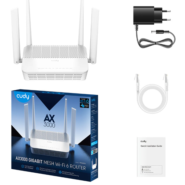 Thiết bị mạng Wifi CUDY AX3000 Gigabit WIFI 6 Mesh Router WR3000S