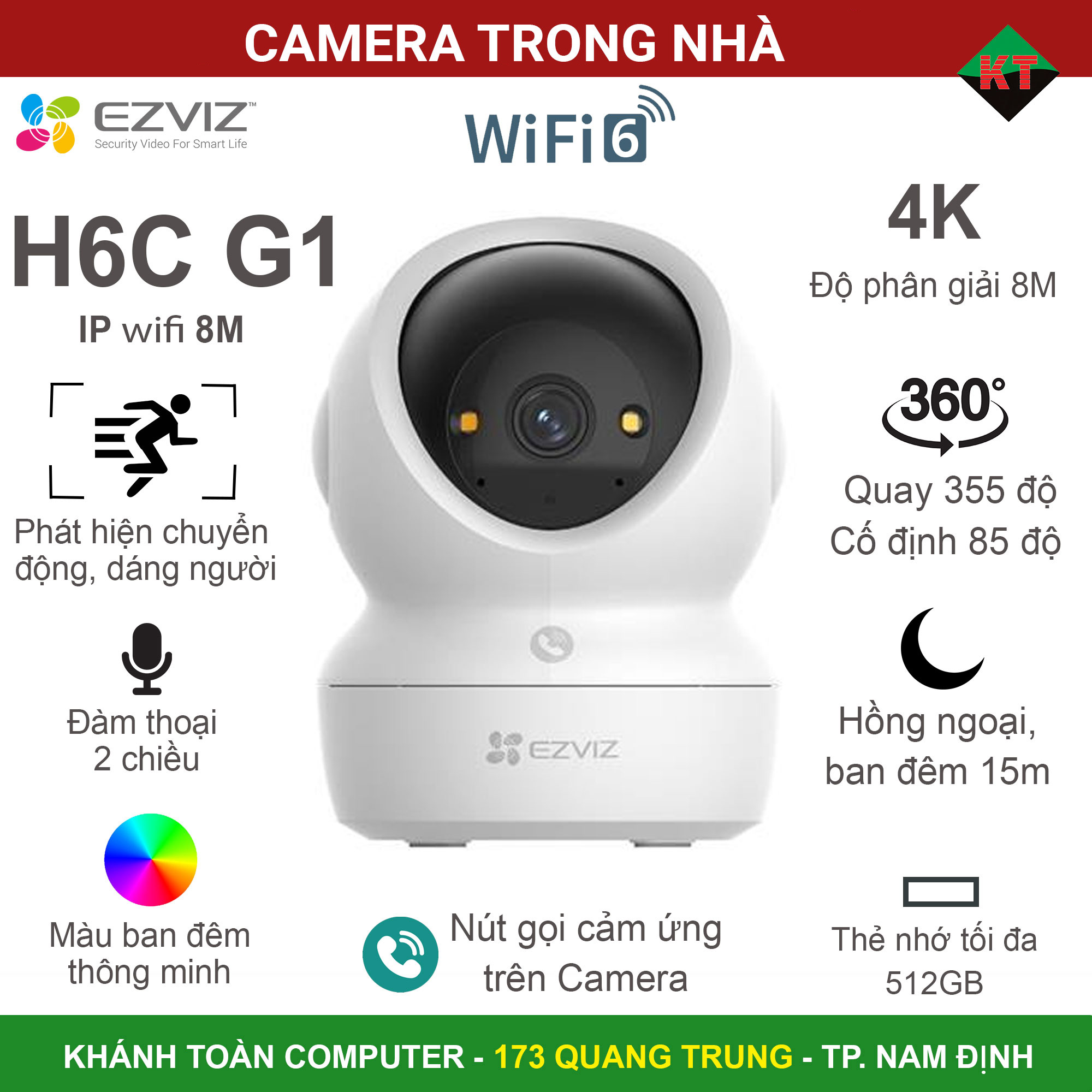 Camera trong nhà EZVIZ H6C G1 4K quay quét thông minh wifi 6