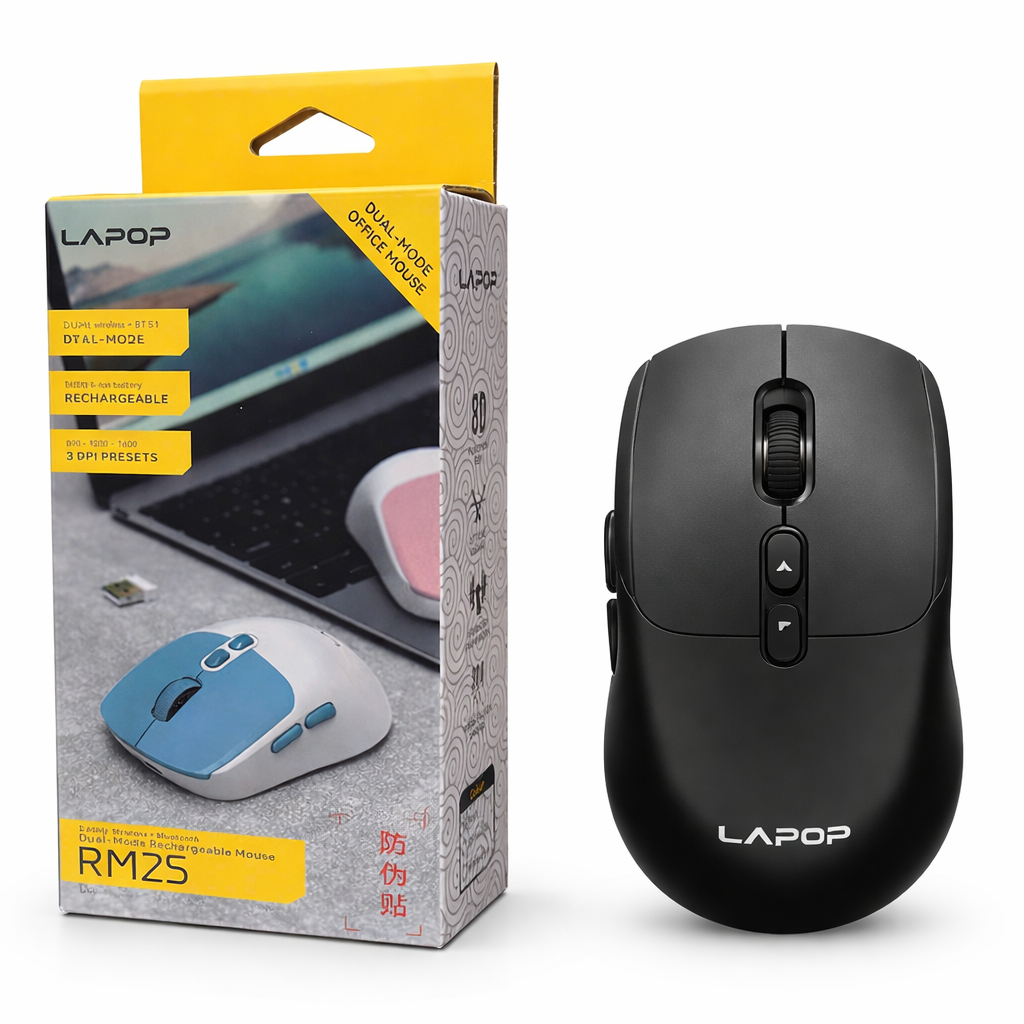 - Chuột không dây LAPOP RM25 sạc pin type-C/ 2.4Ghz & bluetooth
