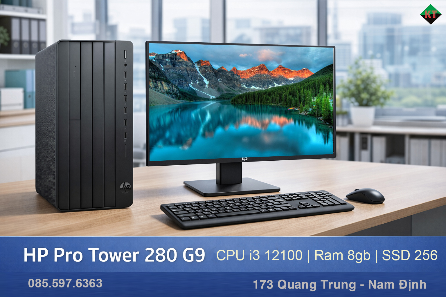 Máy Tính Để Bàn Đồng Bộ HP Pro Tower 280 G9 là lựa chọn lý tưởng cho những ai đang tìm kiếm một bộ PC văn phòng ổn định – bền bỉ – dễ sử dụng. Với Intel Core i3-12100, 8GB RAM, SSD 256GB và Windows 11 bản quyền, sản phẩm đáp ứng tốt nhu cầu làm việc và học tập hàng ngày. Hiện sản phẩm đang được phân phối tại Máy Tính Khánh Toàn, sẵn sàng tư vấn và hỗ trợ tận tình.