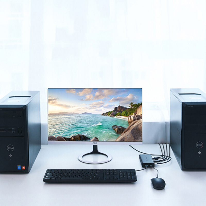 - Một bộ bàn phím, chuột, màn hình, kiểm soát tối đa 2 máy tính giao diện HDMI, không cần phải cài đặt phần mềm, chuyển đổi quan trọng, cũng có thể được sử dụng nút điều khiển có trên bộ sản phẩm để điều chỉnh , giúp các bạn có thể dễ dàng điều khiển để làm việc trên 2 máy tính.