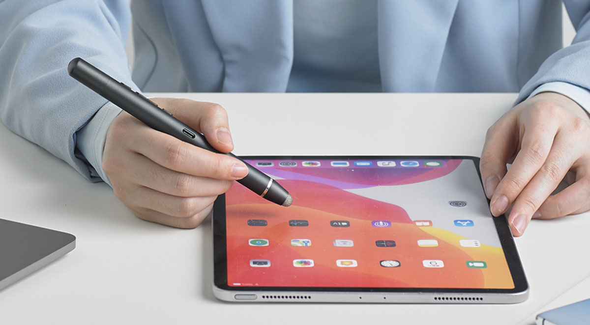 Đầu bút dùng được cho màn hình cảm ứng của điện thoại hoặc tablet, giúp bạn thao tác dễ dàng trên các thiết bị này.